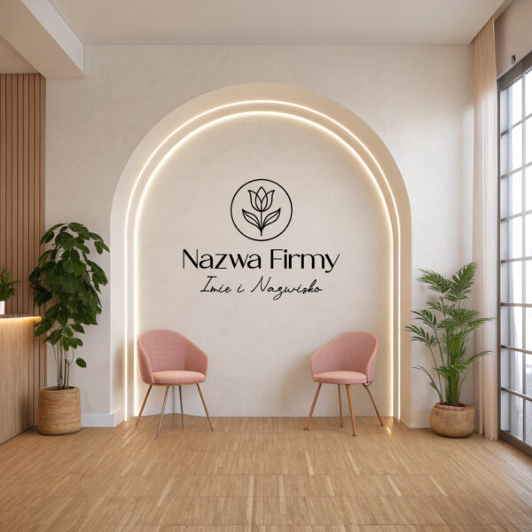 Naklejka na ścianę z nazwą firmy i tulipanem