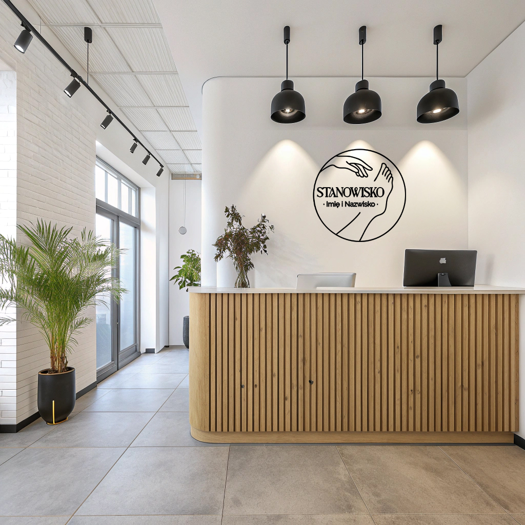 Okrągłe logo na ścianę z ilustracją dłoni i stopy