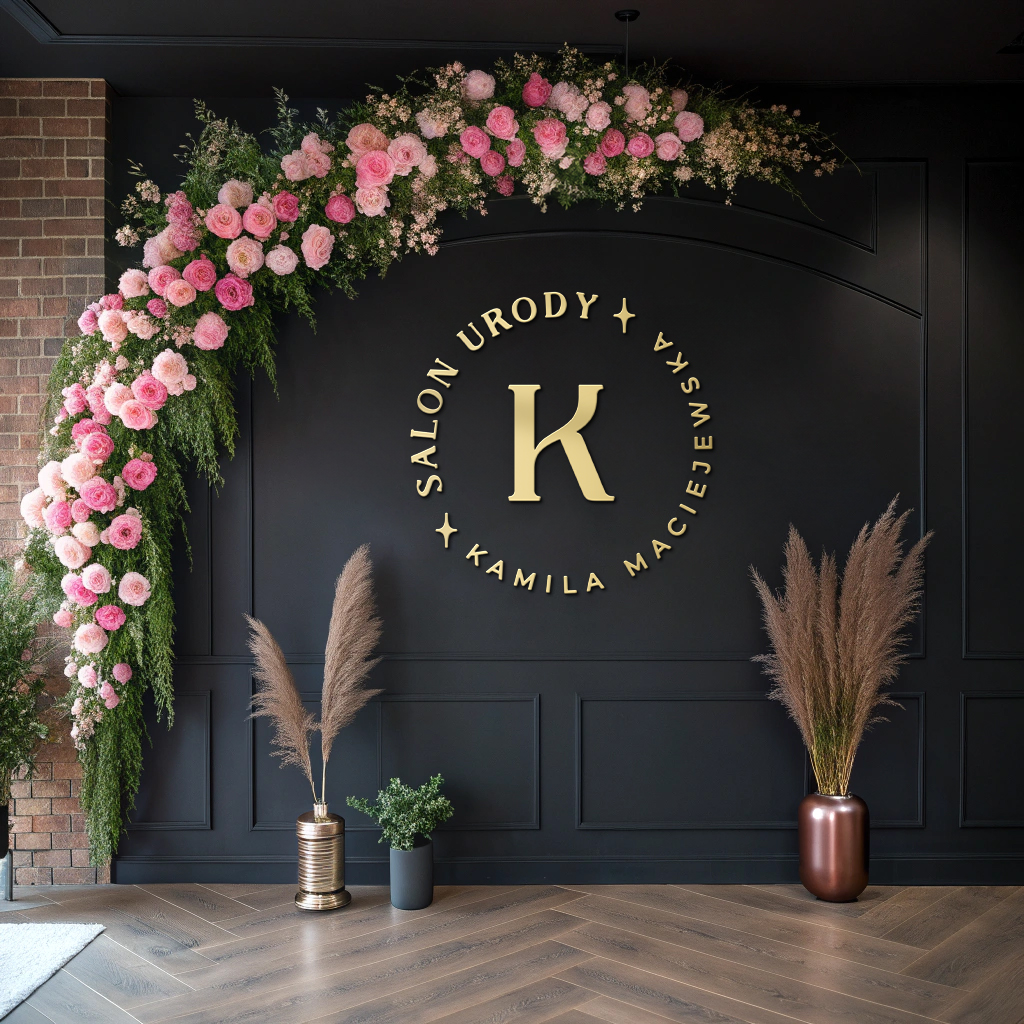Okrągłe logo z plexi polecamy do upiększenia ścian w gabinecie kosmetycznym.