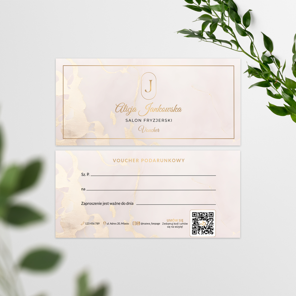 Vouchery prezentowe z marmurem i owalnym logo